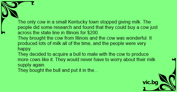 The only соw in a small Kentucky town stopped giving milk. The people did some research and found that they could buy a соw just across the state line in Illinois for $200.