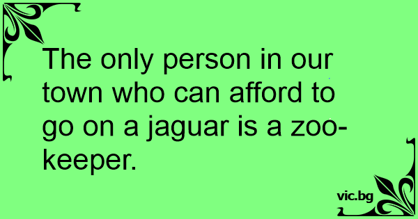 The only person in our town who can afford to go on a jaguar is a zoo-keeper.