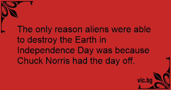 The only reason aliens were able to destroy the Earth in Independence Day was because Chuck Norris had the day off.