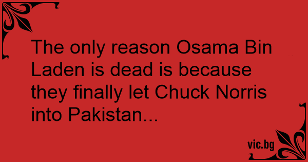 The only reason Osama Bin Laden is dead is because they finally let Chuck Norris into Pakistan...