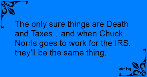 The only sure things are Death and Taxes…and when Chuck Norris goes to work for the IRS, they'll be the same thing.