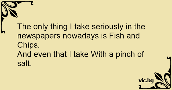The only thing I take seriously in the newspapers nowadays is Fish and Сhiрs.