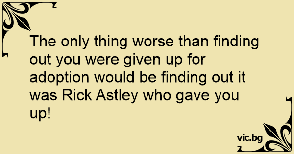 The only thing worse than finding out you were given up for adoption would be finding out it was Rick Astley who gave you up!