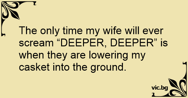 The only time my wife will ever scream “DEEPER, DEEPER” is when they are lowering my casket into the ground.