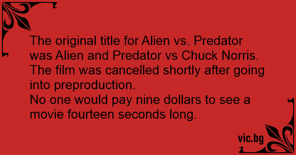 The original title for Alien vs. Predator was Alien and Predator vs Chuck Norris.