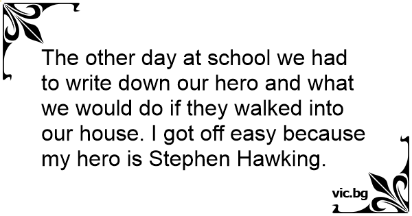 The other day at school we had to write down our hero and what we would do if they walked into our house. I got off easy because my hero is Stephen Hawking.