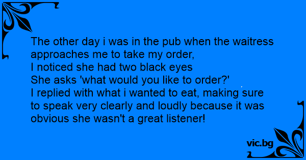 I replied with what i wanted to eat, making sure to speak very clearly and loudly because it was obvious she wasn't a great listener!
