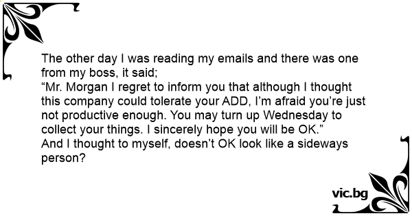 “Mr. Morgan I regret to inform you that although I thought this company could tolerate your ADD, I’m afraid you’re just not productive enough. You may turn up Wednesday to collect your things. I sincerely hope you will be OK.”