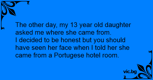 I decided to be honest but you should have seen her face when I told her she came from a Portugese hotel room.