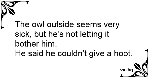 The owl outside seems very sick, but he’s not letting it bother him.