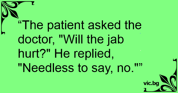 “The patient asked the doctor, "Will the jab hurt?" He replied, "Needless to say, no."”