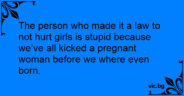 The person who made it a law to not hurt girls is sтuрid because we’ve all kicked a pregnant woman before we where even born.