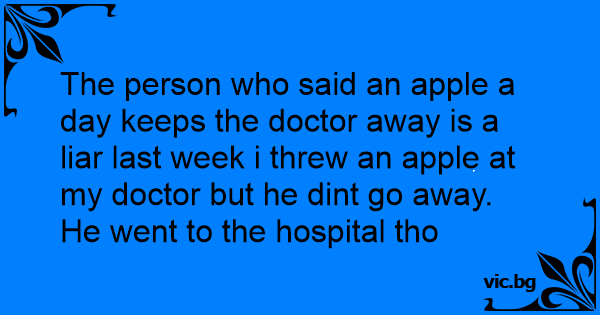 The person who said an apple a day keeps the doctor away is a liar last week i threw an apple at my doctor but he dint go away.