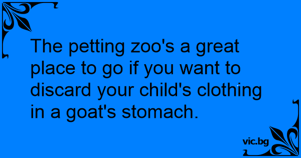 The petting zoo's a great place to go if you want to discard your child's clothing in a goat's stomach.