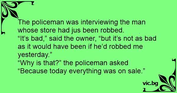 “It’s bad,” said the owner, “but it’s not as bad as it would have been if he’d robbed me yesterday.”