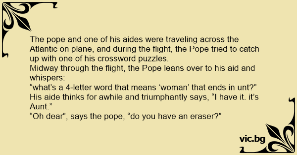 The pope and one of his aides were traveling across the Atlantic on plane, and during the flight, the Pope tried to catch up with one of his crossword puzzles.