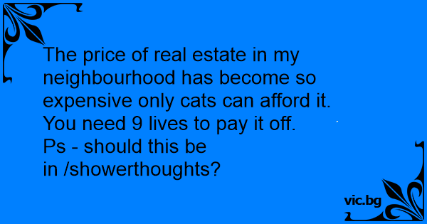 The price of real estate in my neighbourhood has become so expensive only cats can afford it.