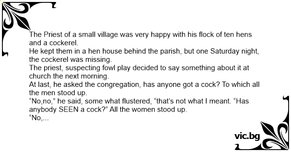 At last, he asked the congregation, has anyone got a соск? To which all the men stood up.