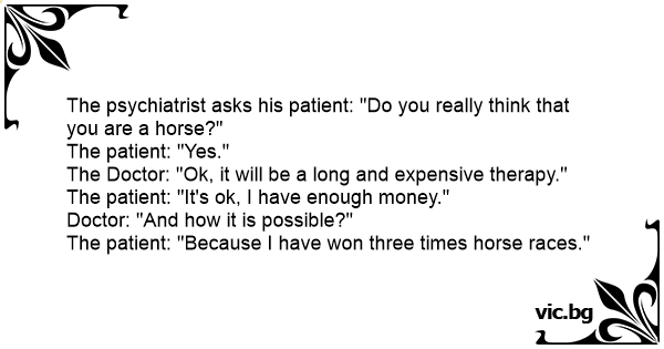 The psychiatrist asks his patient: "Do you really think that you are a horse?"