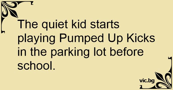 The quiet kid starts playing Pumped Up Kicks in the parking lot before school.