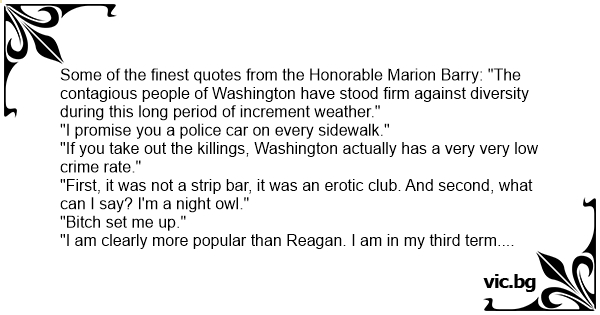 Some of the finest quotes from the Honorable Marion Barry: "The contagious people of Washington have stood firm against diversity during this long period of increment weather."