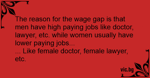 The reason for the wage gap is that men have high paying jobs like doctor, lawyer, etc. while women usually have lower paying jobs...