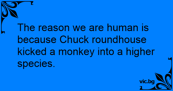 The reason we are human is because Chuck roundhouse kicked a monkey into a higher species.