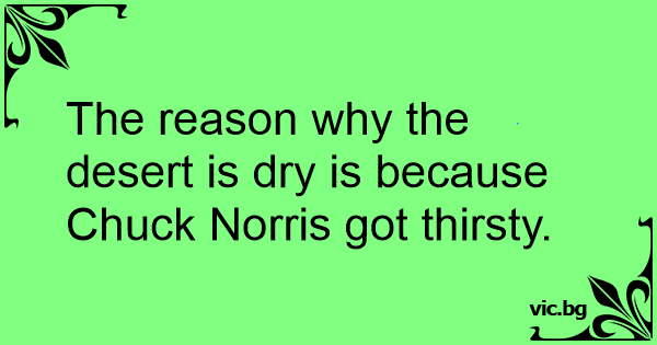 The reason why the desert is dry is because Chuck Norris got thirsty.