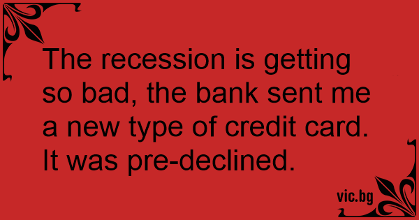 The recession is getting so bad, the bank sent me a new type of credit card. It was pre-declined.