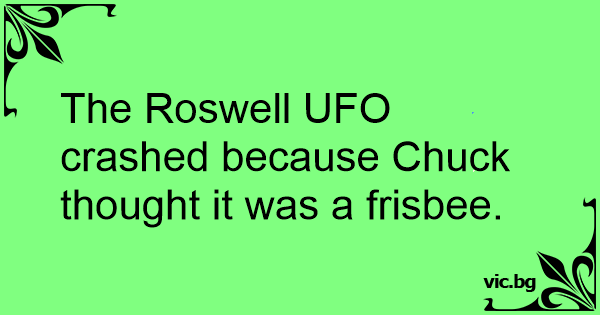 The Roswell UFO crashed because Chuck thought it was a frisbee.