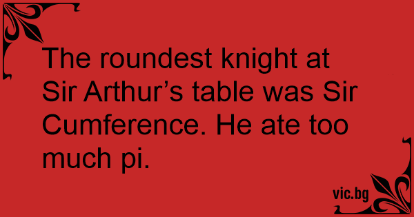 The roundest knight at Sir Arthur’s table was Sir Cumference. He ate too much pi.
