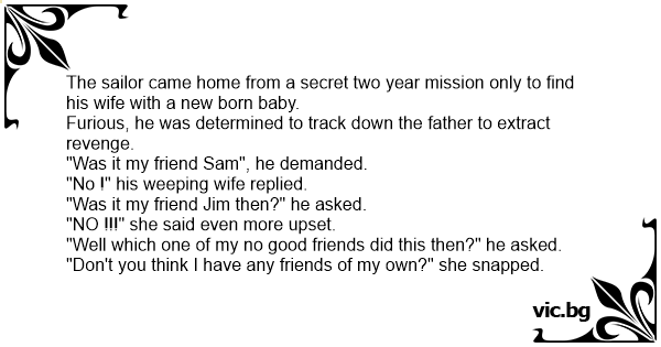 The sailor came home from a secret two year mission only to find his wife with a new born baby.