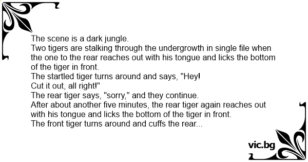 The front tiger turns around and cuffs the rear tiger and says, "I said stop it!"
