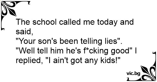 "Well tell him he's f*cking good" I replied, "I ain't got any kids!"