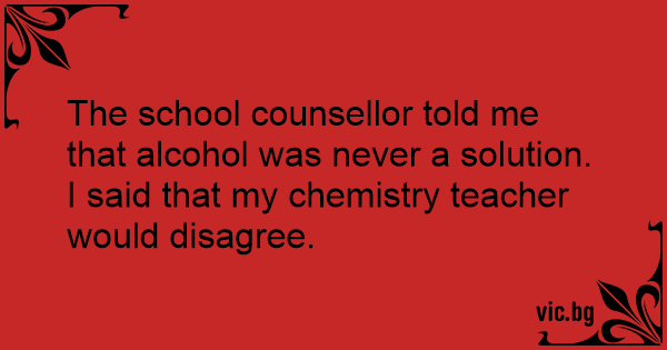 The school counsellor told me that alcohol was never a solution.