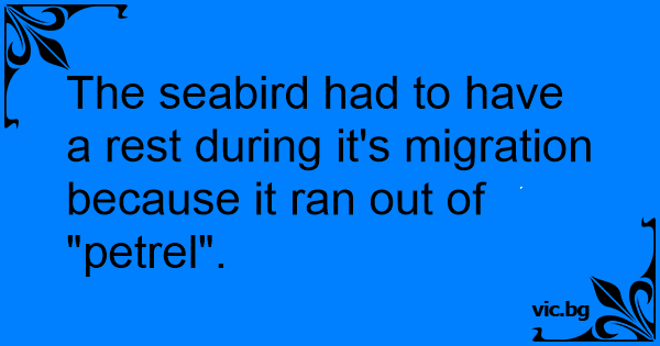 The seabird had to have a rest during it's migration because it ran out of "petrel".