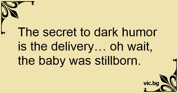 The secret to dark humor is the delivery… oh wait, the baby was stillborn.