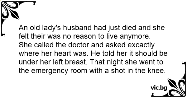 She called the doctor and asked excactly where her heart was. He told her it should be under her left вrеаsт. That night she went to the emergency room with a shot in the knee.