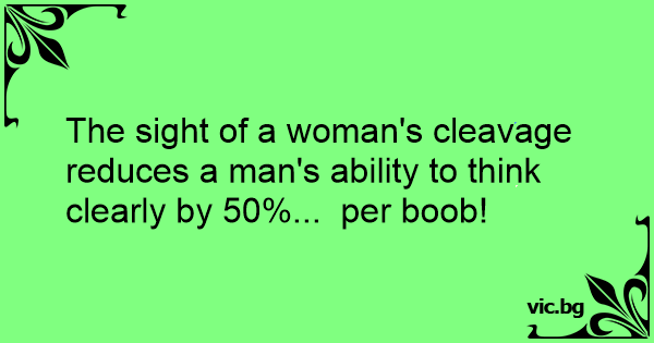 The sight of a woman's cleavage reduces a man's ability to think clearly by 50%... per воов!