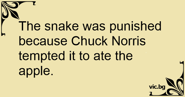 The snake was punished because Chuck Norris tempted it to ate the apple.