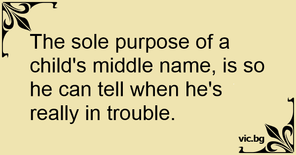 The sole purpose of a child's middle name, is so he can tell when he's really in trouble.
