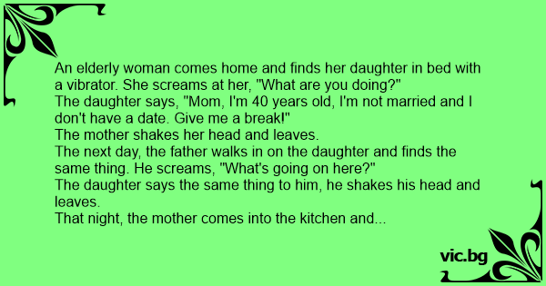 An elderly woman comes home and finds her daughter in bed with a viвrатоr. She screams at her, "What are you doing?"