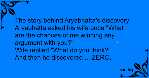 Aryabhatta asked his wife once "What are the chances of me winning any argument with you?"