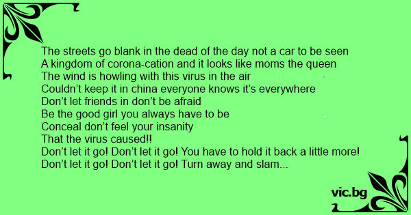 DONT LET IT GO DONT LET IT GO!! And you’ll rise at the break of noon! DONT LET IT GO DONT LET IT GO!! That’s morning girl is gone!! HERE I STAND IN THE DEAD OF NIGHT CAUSE THATS WHEN I WOKE UP!! Let the virus rage on!!! The sickness never gets to me anyway. DING.
