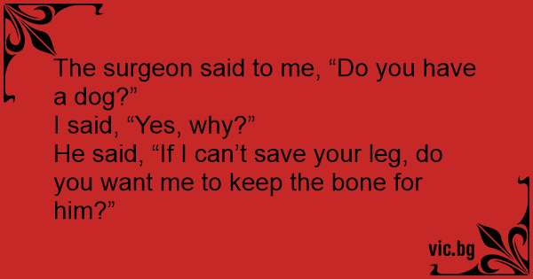 The surgeon said to me, “Do you have a dog?”