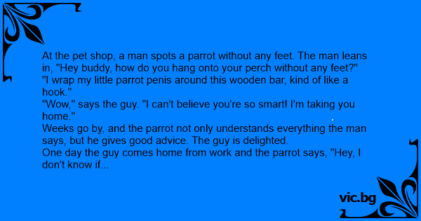 "I don't know," says the parrot. "I got a hard-on and fell off my perch."