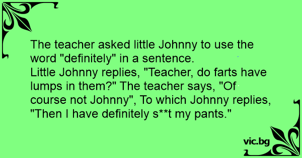 Little Johnny replies, "Teacher, do farts have lumps in them?" The teacher says, "Of course not Johnny", To which Johnny replies, "Then I have definitely s**t my pants."