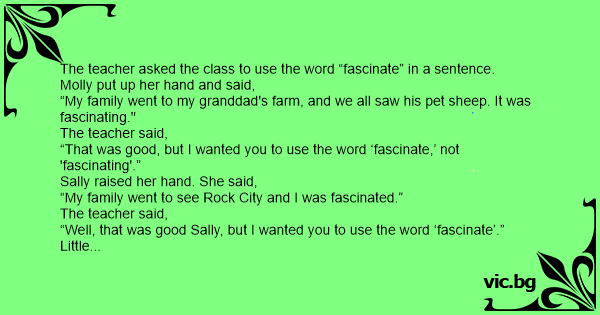 Little Johnny raised his hand, but the teacher hesitated because she had been burned by Little Johnny before. She finally decided there was no way he could damage the word “fascinate,” so she called on him.