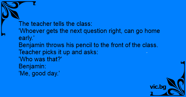 Benjamin throws his pencil to the front of the class. Teacher picks it up and asks: