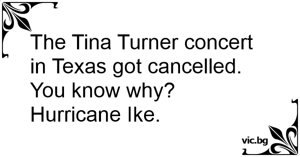 The Tina Turner concert in Texas got cancelled. You know why? Hurricane Ike.
